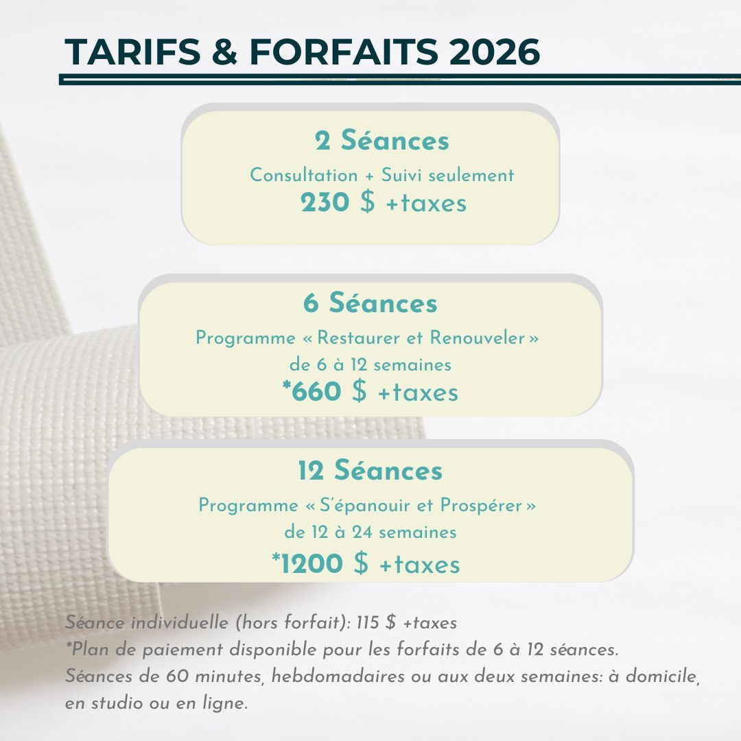 Sessions individuelles pour soutenir votre mobilité, votre équilibre et votre paix intérieure
